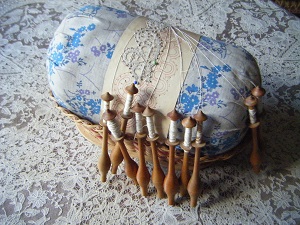 ![]() coussin anglais "Bucks" avec fuseaux perlés |